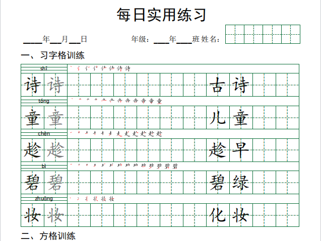 【小学语文】26春二下语文:习字格+方格+章法练习+字帖