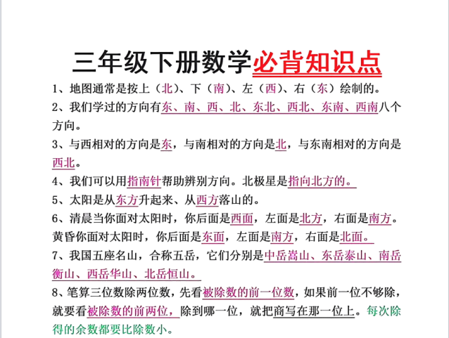 【小学数学】26春数学三年级下册必背知识点汇总