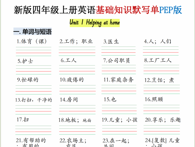 【小学英语】25秋新四上《基础知识默写单》(含答案17页)