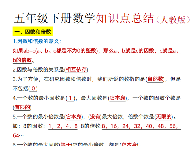 【小学数学】26春数学五年级下册必背知识点汇总