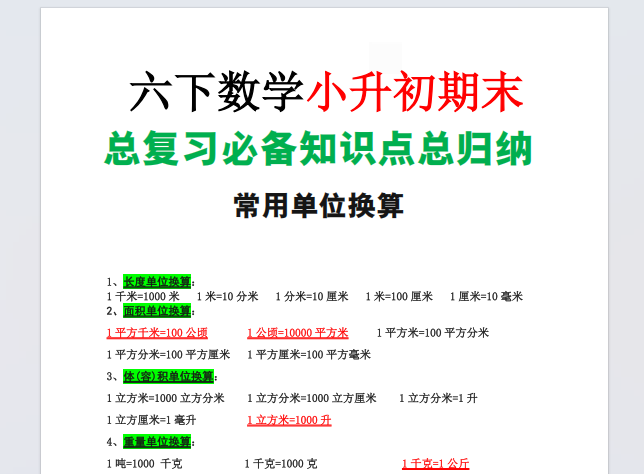 【小学数学】26春六年级(下)数学小升初总复习总归纳