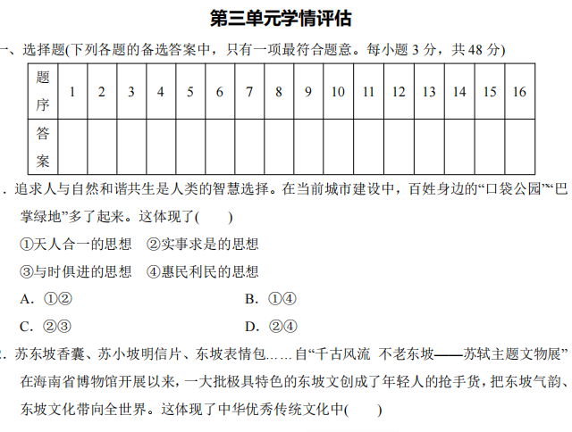 > 【初中道法】七年级下册第三单元学情评估卷2(人教版)